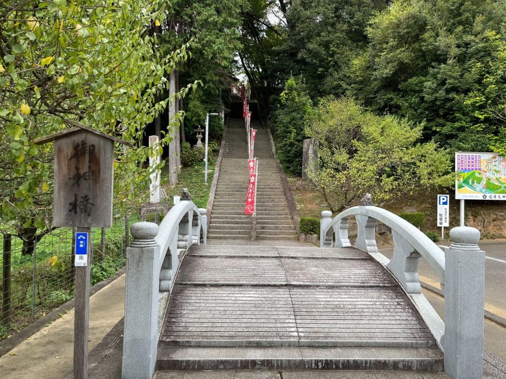 岩津天満宮のお参りは、鳥居をくぐって、この神橋を願い事を唱えながら渡るとご利益があるそうです。(岩津天満宮HP参照:境内案内・アクセス | 学問の守り神 岩津天神